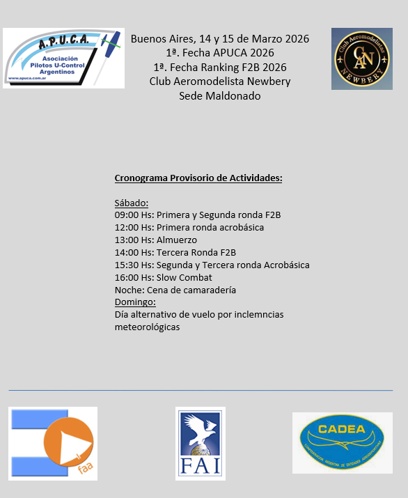 Aquellos pilotos que vuelan la 1° Fecha del Torneo APUCA 2024 deberán abonar en el campo de vuelo al Club Organizador.